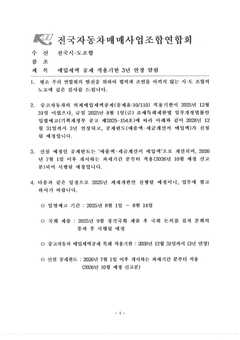 매입세액 공제 적용기한 3년 연장 국무회의 의결 알림